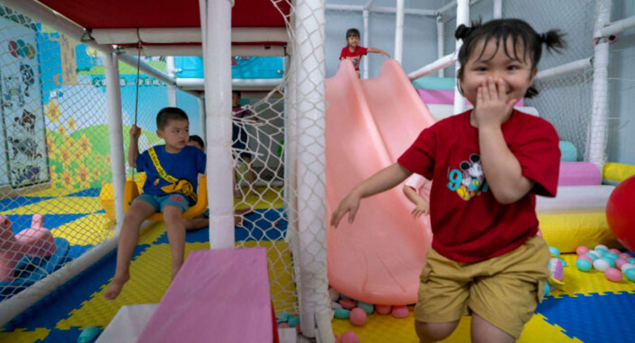 暑假期間,鈦美員工的孩子在兒童托管中心里玩耍。記者 劉淑芳 攝