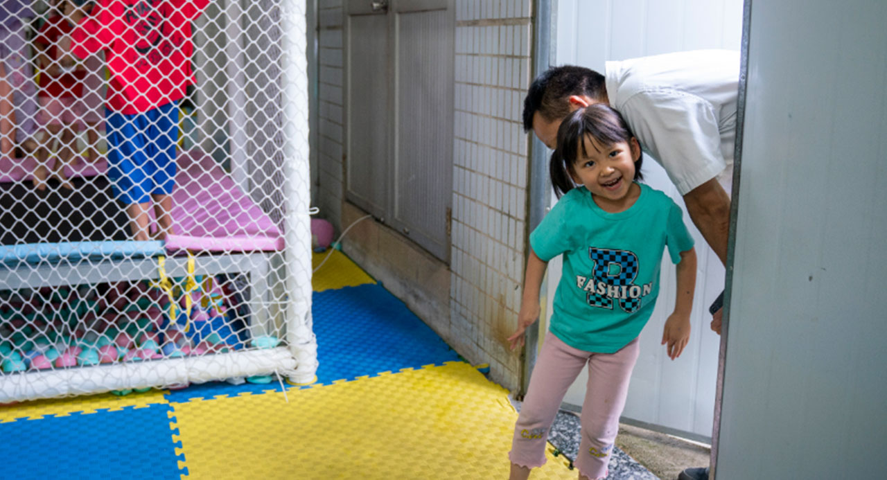 午間休息,員工抽空來(lái)托管中心看望孩子。記者 劉淑芳 攝