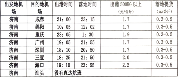 4、出港運(yùn)費(fèi)由濟(jì)南機(jī)場(chǎng)收取,落地提貨費(fèi)各地機(jī)場(chǎng)標(biāo)準(zhǔn)不一,其會(huì)據(jù)實(shí)收取。