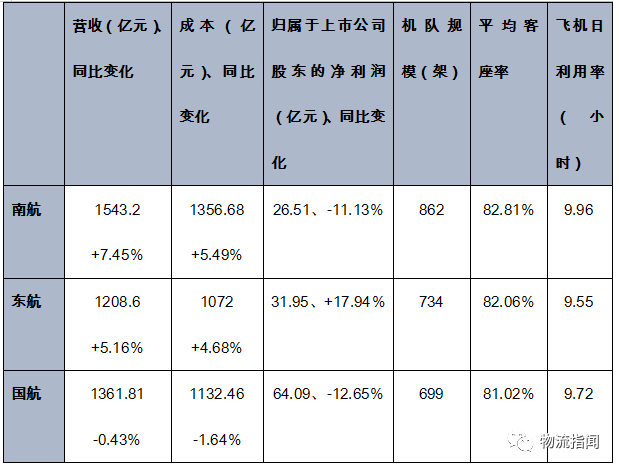 濟(jì)南物流公司:三大航司公布2019年業(yè)績(jī),南航營(yíng)收最高